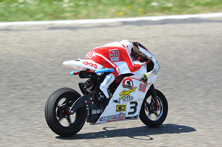 Français. Sa piste porte le nom de Mini Circuit Paul Ricard, en hommage à la société Ricard grâce à laquelle naquit le projet à l'époque. Un circuit modifié à trois reprises et refait à neuf en 2006, dont le développé est à présent porté à 295 mètres. C'est donc en ces lieux mythiques du modélisme que 51 pilotes sont venus trouver refuge au sein des stands mis à leur disposition. Dans le détail, cette Coupe de France se répartissait en 4 catégories distinctes, avec 23 pilotes inscrits dans la catégorie Super Bike, puis 15 en catégorie World Stock Bike. Nous trouvions encore 8 pilotes présents dans la catégorie Stock Bike, puis 5 en catégorie Nitro Bike. Des pilotes étrangers s'étaient spécialement déplacés pour la circonstance à l'instar de l'Allemand Clark Wolhert, une figure emblématique de la discipline puisqu'il s'agit du concepteur de la moto Jabber. Nous comptions également dans les rangs quelques pilotes Italiens dont Michèle Repetati, concepteur des fameuses motos RG qui dominent une bonne partie du plateau. Puis l'Italien Marco Giovannini, Champion du monde 2014, et les deux Français Corentin Blaise et Laurent Zatla respectivement champion du monde 2013 et vice champion du monde 2015. Quant au circuit, celui-ci restera plutôt humide et glissant durant la première journée de course. Le lendemain, la course se déroulera normalement sur le sec, et même avec un franc soleil pour les remontées.